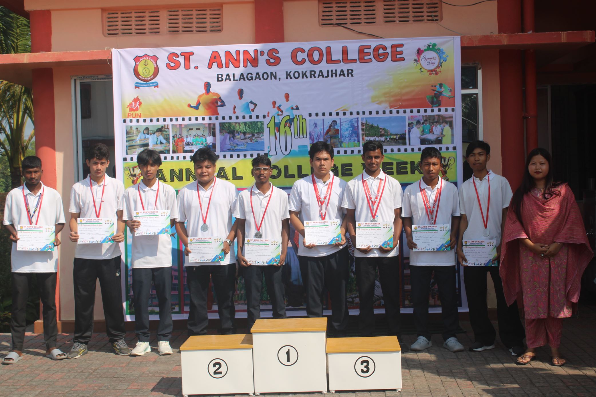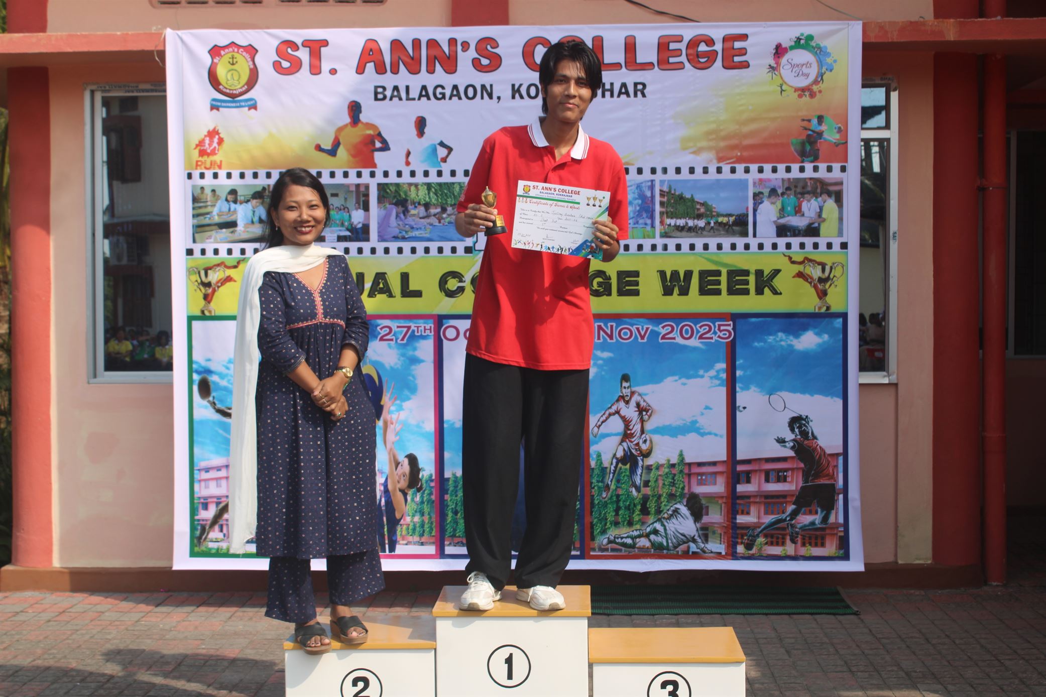 Description :The 16th Annual College Week of St. Ann’s College began with great excitement and enthusiasm. Day 1 featured a vibrant start with the Drill Competition, showcasing discipline and coordination among the students. The day continued with thrilling racing eve