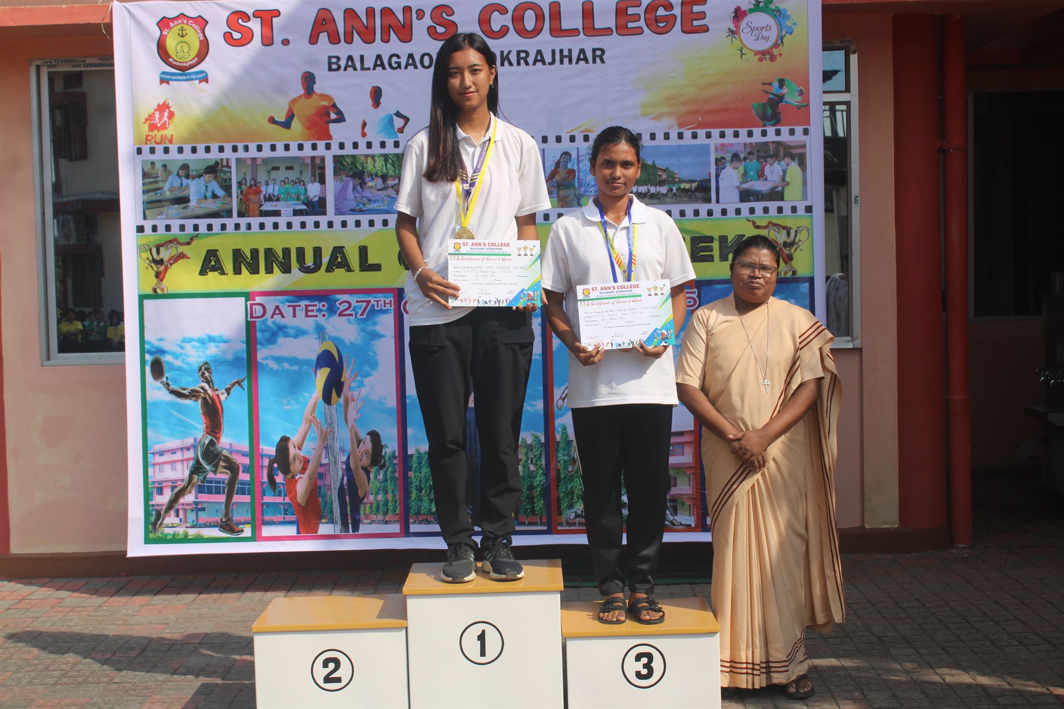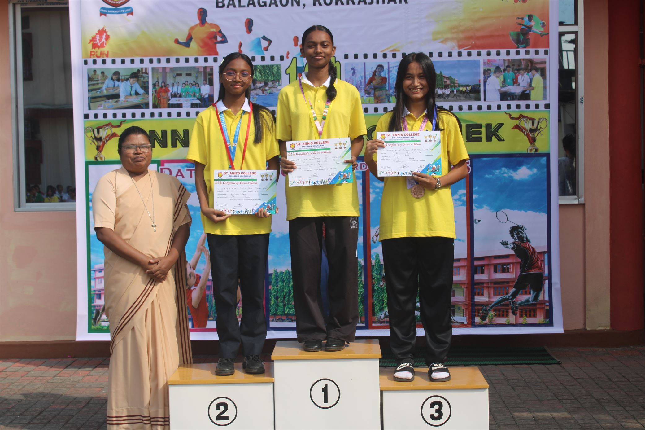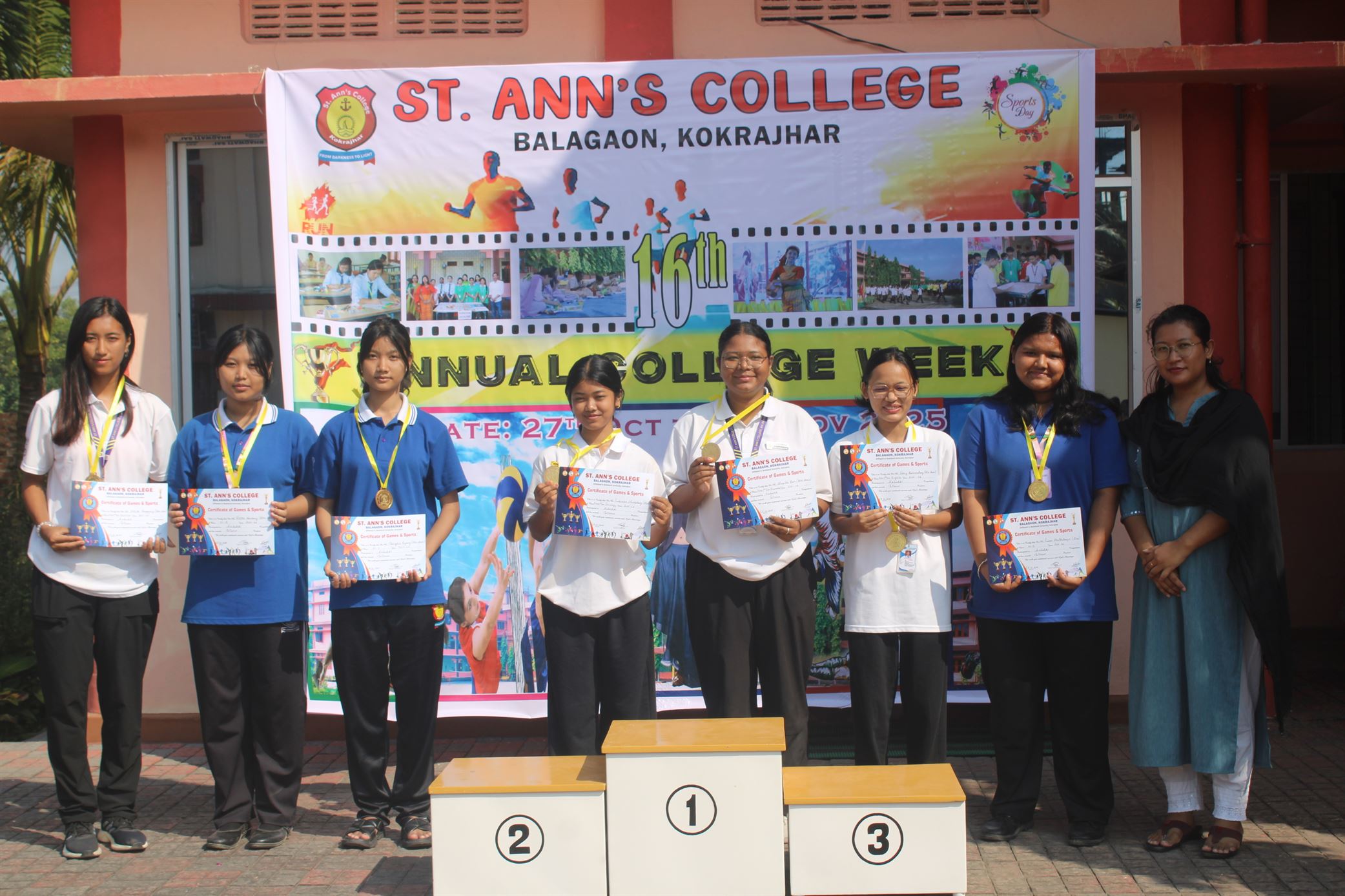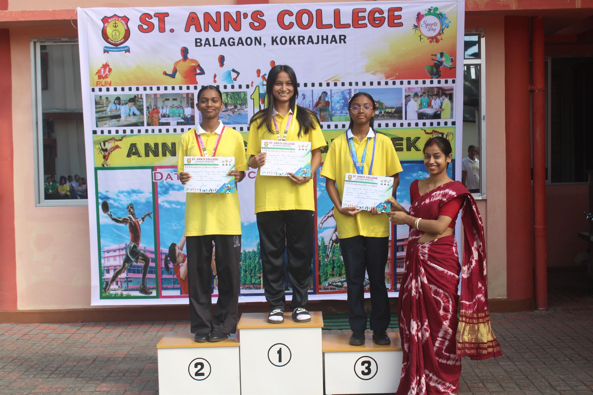Description :The 16th Annual College Week of St. Ann’s College began with great excitement and enthusiasm. Day 1 featured a vibrant start with the Drill Competition, showcasing discipline and coordination among the students. The day continued with thrilling racing eve