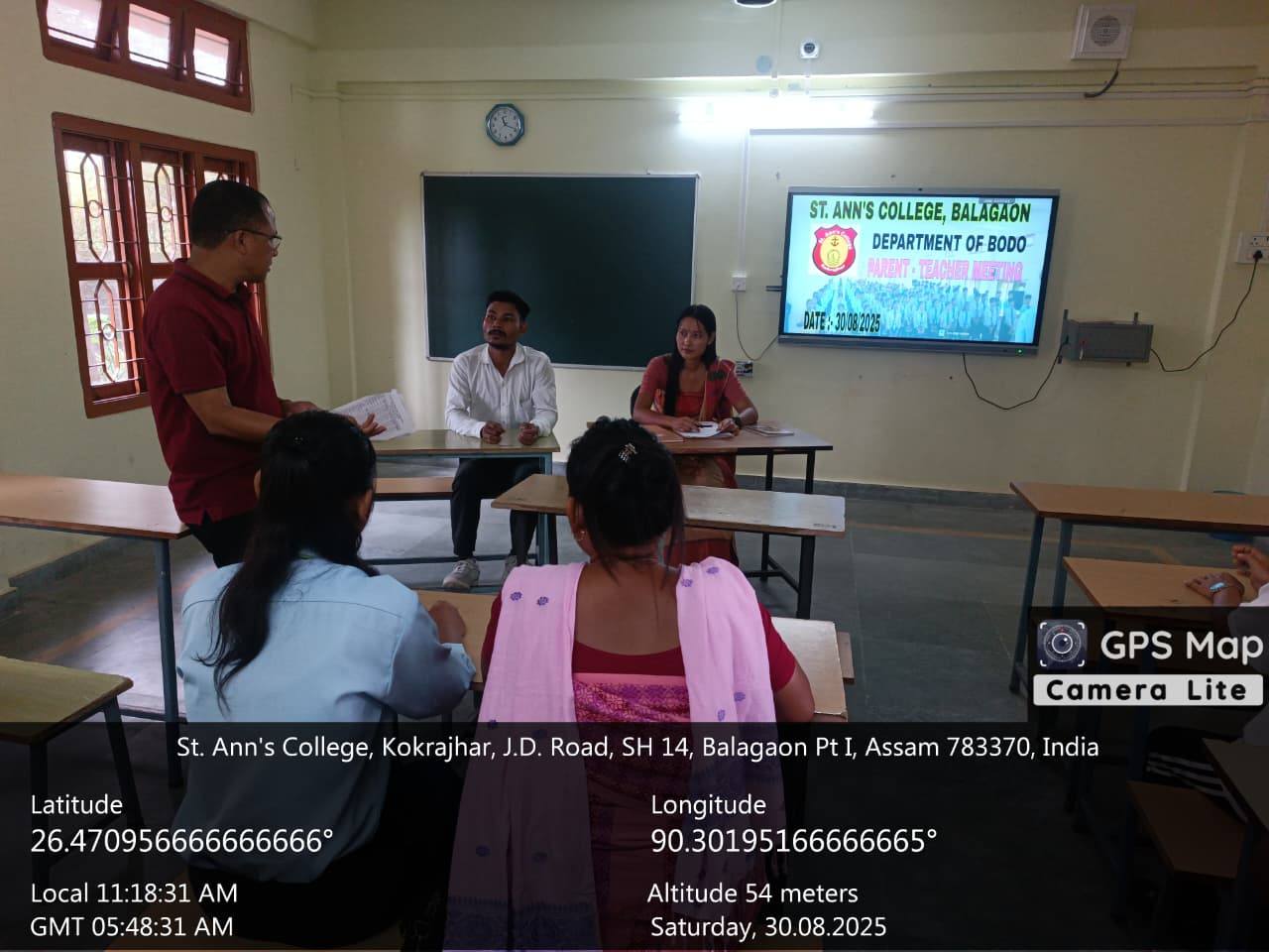 Description :Parent–Teacher Meeting Department of Bodo The Parent–Teacher Meeting of the Department of Bodo was held on 30th August 2025 at 11:00 a.m. The meeting served as a meaningful platform for parents and teachers to come together for a scheduled interaction a