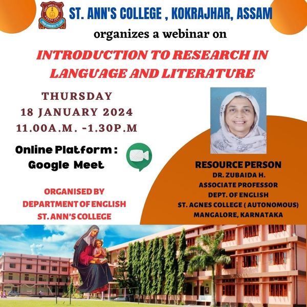 Description :GLIMPSES OF THE WEBINAR - 18 JANUARY 2024 INTRODUCTION TO RESEARCH IN LANGUAGE AND LITERATURE